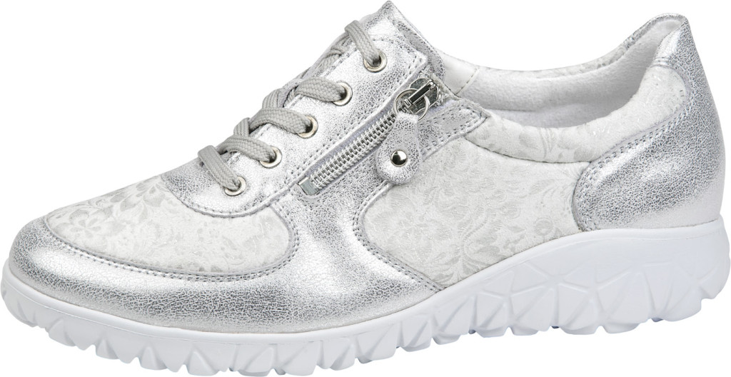 Egy olyan modell, mint a Havy-Soft, mindkettő lehet: Orthotritt komfortcipő és divatos is egyben. Itt a döntő tényező a kiválóan nyújtható minőségű anyagok megválasztása: nubuk és textil sztreccs fehér-ezüst színben, stílusos hatással. A fűzős cipőben minden megtalálható, amire egy kényelmi cipőnek szüksége lehet: a kényelmes H szélességtől a könnyű be- és kiszállást biztosító oldalsó cipzáron át a légáteresztő és antibakteriális kivehető talpbetétig és a stílusos, extra könnyű EVA anyagból készült külső talpig.